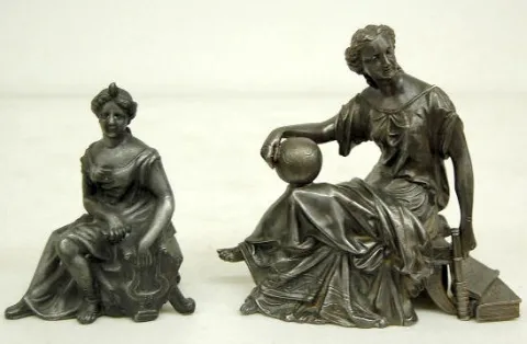 1.) Gilbert Diana 2.) Lady seated with globe, spyglass, Atlas and another book. Tallest 8"