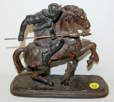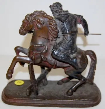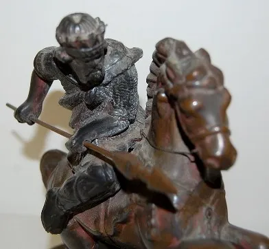 Antique Warrior on Horse Clock Statue great detail, heavy. 7 1/4" x 7 3/4"