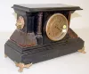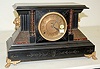 time and strike; gong strike; 4 1/2" metal dial; has pendulum; no key; adamantine columns and side with cast metal lion heads and paw feet; unmarked movement. (Winds, but does not run; gong sounds flat; dial held on by one screw; new screws and plate on back of clock; mar to top of case.) 11"