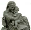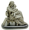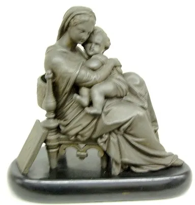 Clock Statue of Female Holding Child sitting on chair; white metal on wood base. 8 1/2" x 8 1/2"