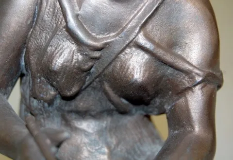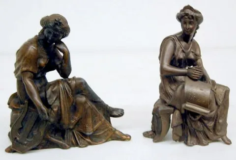 1.) Lady sitting w/ elbow on knee, holding lyre. 8 1/2" T 2.) Lady sitting, writing on tablet. 9" T