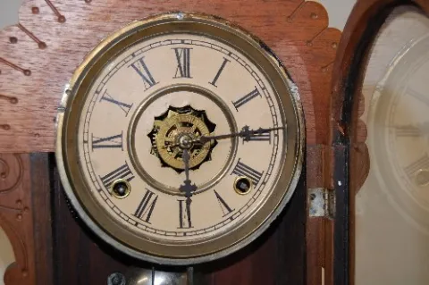 Anonymous (not verified) 24 October 2024 Clock image thumburl Antique Walnut Kitchen Clock w/ Alarm T and S; pendulum and key.... Subscribe here Sort Price Subscribers only Sold Date Subscribers only