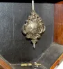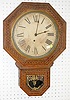 time only; 11 3/4" unmarked paper dial on tin; lower door painted "Regulator B"; has pendulum and key; not tested for running condition. (Dial discolored.) 25"