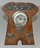 Small Oak and Metal Floral Clock desk top easel back. 6" This lot is in rough, as is, as found condition.