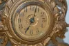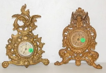 1.) Iron dragon and lightning bolt clock; w/ claw feet; 11". 2.) Western Clock Mfg. figural clock w/ angel and winged pan type figures. This lot is in rough, as is, as found condition.