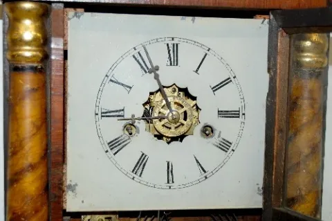 Rosewood, metal dial, with weight, no pendulum. (New dial, wood repaired.) This Lot is in As Is, As Found Condition.