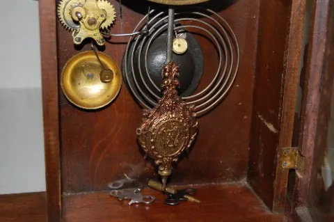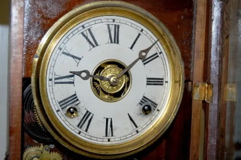Antique Walnut Kitchen Clock W/ Alarm