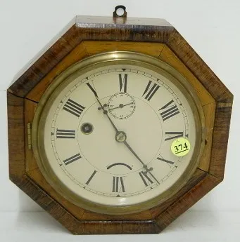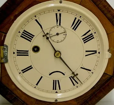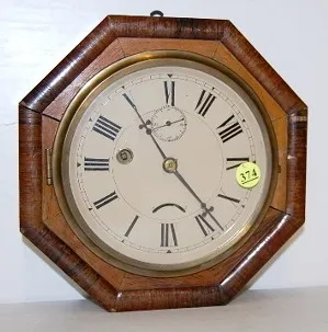 Rosewood Octagon Wall Clock time only; 5 1/2" metal painted dial with seconds bit. (Note on back says dial repainted in 1970; small areas of loss to finish.) 8 1/2"