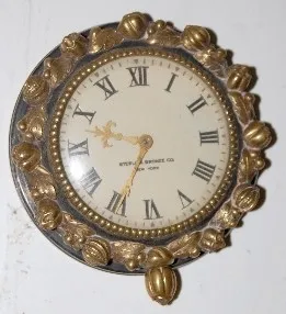 ornate floral bronze molded; signed dial; fixed for hanging. 10 1/2"...