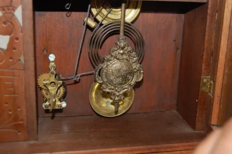 E. Ingraham Walnut Kitchen Clock W/Alarm This lot is in rough, as is, as found condition.
