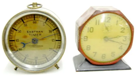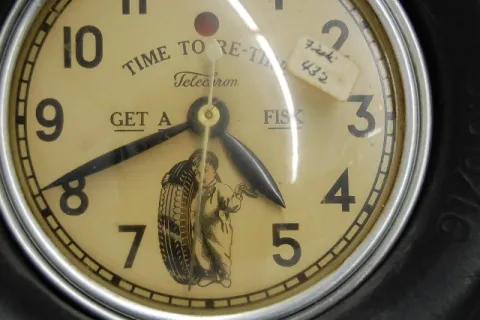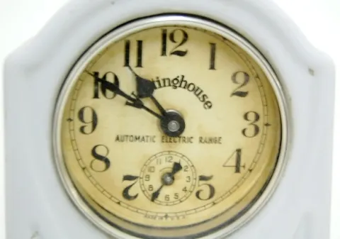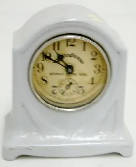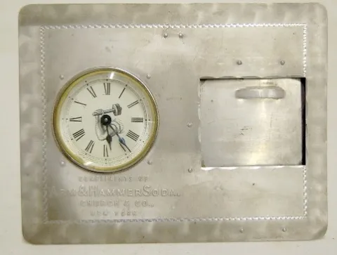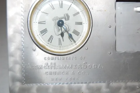 1.) Ansonia aluminum desk clock; compliments of Arm and Hammer Soda NY; dated 1899; w/ clock and place for a calendar. 2.) Westinghouse automatic elec...