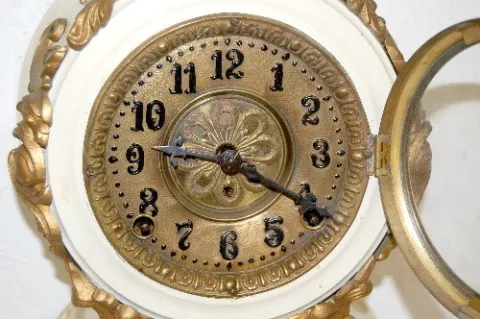 Iron Mantle Clock w/ Ornate Trim and Dial T and S; as found. This lot is in rough, as is, as found condition.