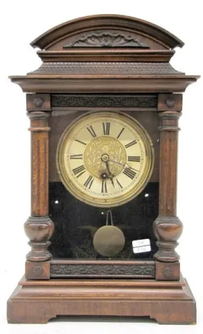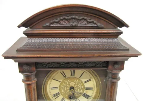 Antique Walnut German Carved Shelf Clock: