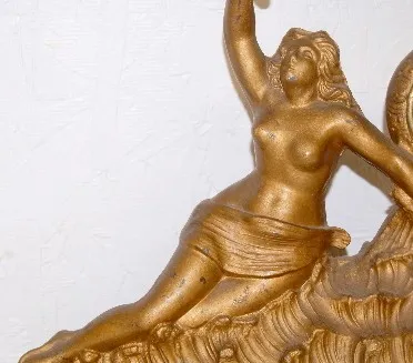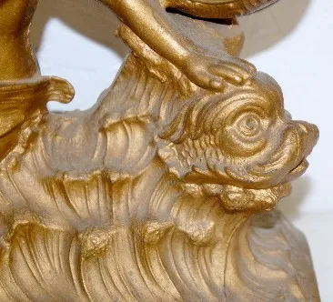 Antique Nude Lady and Dolphin Clock . (Old repair on the back side.) 13" x 12" This lot is in rough, as is, as found condition.