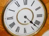 Oak Emperor Short Drop Schoolhouse Clock time only; tiger oak case; 11 1/2" dial; partial label. 26 1/2"