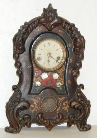 Antique Iron Front Shelf Clock W/ M.O.P. Inlay