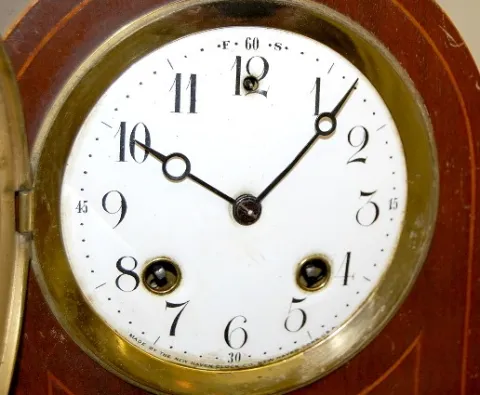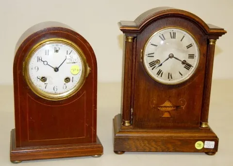 2 Mantle Clocks: New Haven Inlaid and Oak Inlaid