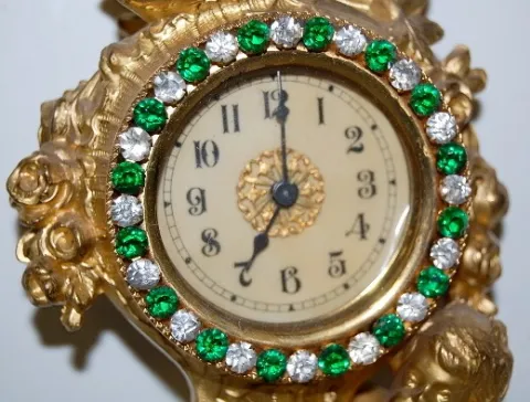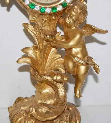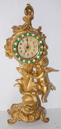 Metal Figural Cherub Novelty Clock w/ rhinestone bezel.