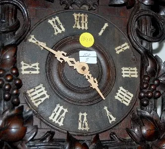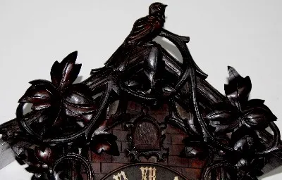 Black Forest Carved Bird and Grapes Cuckoo Clock 2 acorn weights.