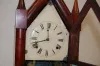 Chauncey Boardman Fusee Steeple Clock metal dial; T and S. (Stained inner label; replaced glass.) This lot is in rough, as is, as found condition.