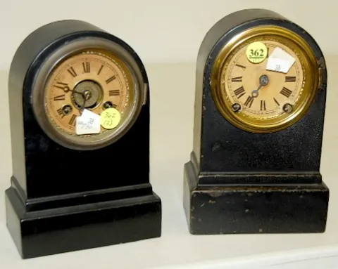 2 Small Antique Terry Iron Case Shelf Clocks