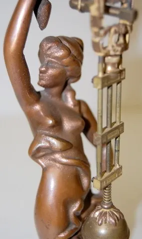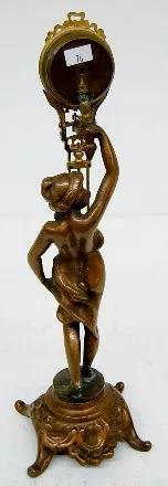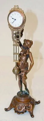 Gaiete Lady Figural Swinger Clock porcelain dial. (Dial has hairlines; rough patina.) 14 1/2"
