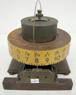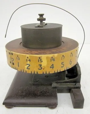 Unusual Tape Measure Clock wood and brass; no marks. 10" x 8 1/2"