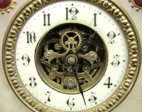 Antique French Alabaster Clock W/ Lion Figure