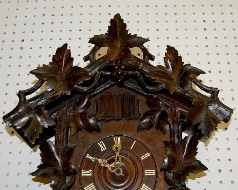 Black Forest Carved Cuckoo w/ Grapes and Leaves