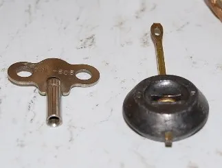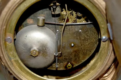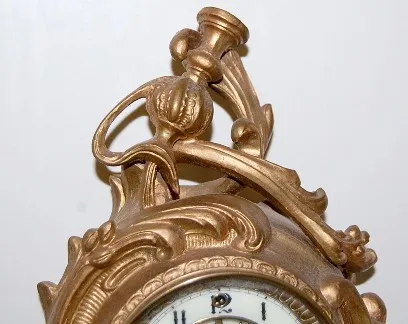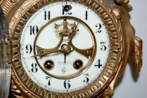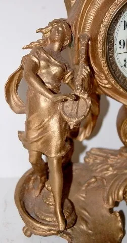 Metal Lady Figural Novelty Clock visible escapement; w/ key and pendulum.