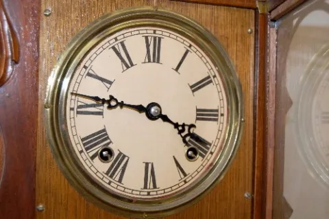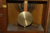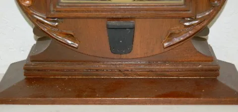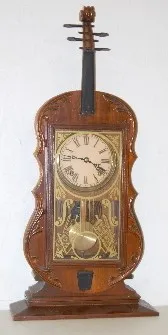 Figural Violin Clock, T and S, Paper Dial (Split in wood at top.)