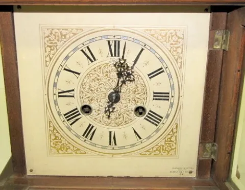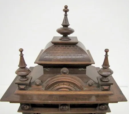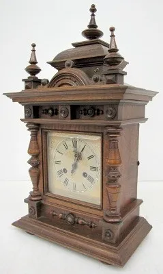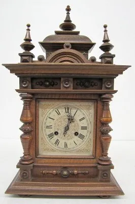 Ornate German Walnut Carved Shelf Clock signed fancy dial; T and S; signed brass movement. 23"