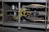 Early Iron Front Mobier Type Clock weight driven; cow tail pendulum; bell strike; two early iron weights. (Pendulum needs repair.)