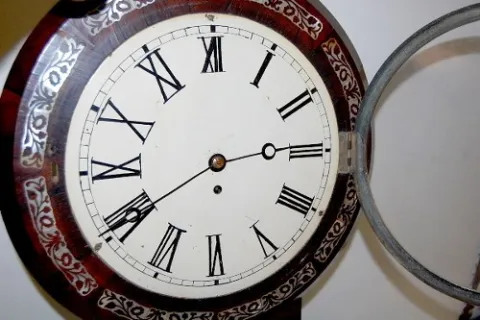 time only. (Minor veneer chip to case; numerals on dial have been repainted.) 29"