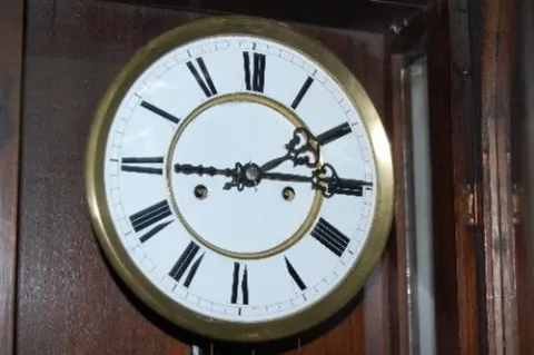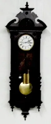 2 Weight Vienna Regulator Clock porcelain dial; brass trim, weights and pendulum. 53"