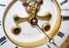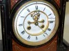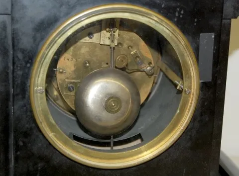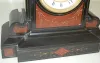 8 day time and bell strike; 4 3/4" double sunk dial, marked "Palmer Bachelders and Co., Boston"; with visible escapement; beveled glass front and back; has pendulum; no key; black slate with brown marble insets; marked movement. (Dial has a hairline after 3; small nicks and chips to case.) 13 1/4" and running at this time