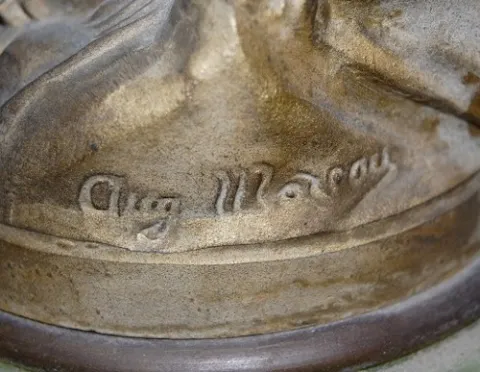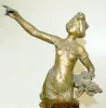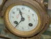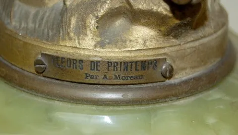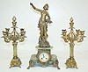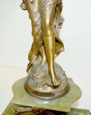 Auguste Moreau 3 Piece Lady Clock Set "Fleurs de Printemps": green onyx candelabras.. (Some patina touch ups.) 23"