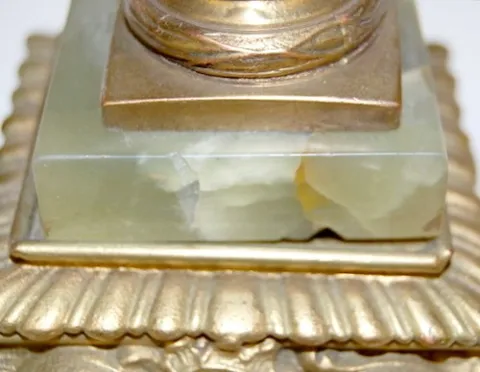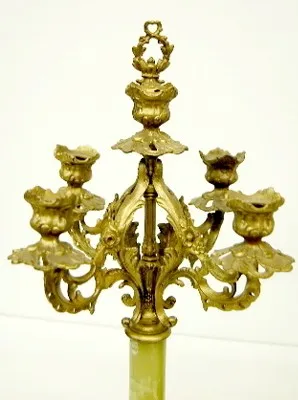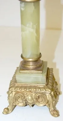 "Fleurs de Printemps": green onyx candelabras.. (Some patina touch ups.) 23"