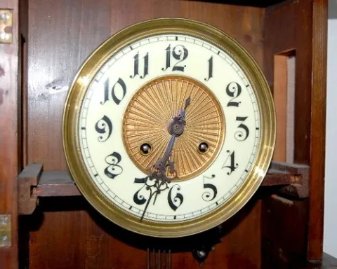 Ornate Antique Walnut Free Swinger Clock