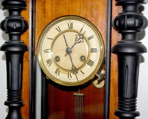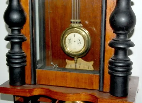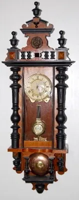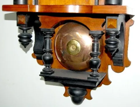 Antique Visible Bell Striking R.A. Wall Clock T and S. (Stained dial; nicely repainted black sections.) 41"