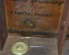 Samuel Terry Wood Works Wt. Driven Shelf Clock wood dial; bell strike; nice interior label; lower glass tablet; dated 1976 Gerald Edelman. 28"