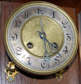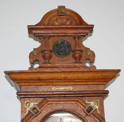 Spring Wound German Clock Einget Ragene Fab Rikmarke; brass dial and trim. 44"