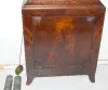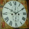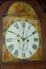with 2 weights, T and S; with seconds and calendar bit; metal painted dial surround; dial is signed Lawson, Bradford; sheep herder and animal scene; iron weights; brass pendulum. (Dial has discolored paint repair; case has some repairs; veneer missing and damaged.) 95" T x 24" W