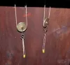 English Mahogany Tall Case Clock with 2 weights, T and S; with seconds and calendar bit; metal painted dial surround; dial is signed Lawson, Bradford; sheep herder and animal scene; iron weights; brass pendulum. (Dial has discolored paint repair; case has some repairs; veneer missing and damaged.) 95" T x 24" W