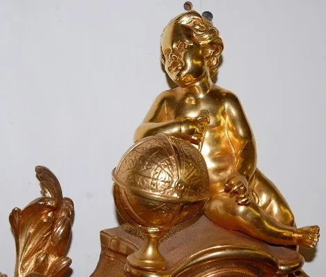 French Bronze Cartel Clock W/ Cherub and Rooster