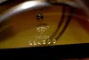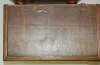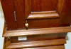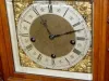 walnut case; winged angels on dial plate; signed 124300; 3 gong chiming clock. 36" on shelf.
