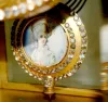 W/Paste Brilliants; signed Japy Freres; artist signed; portrait pendulum; appears to be on ivory wafer; offset. (Loose crystal on pendulum.) 13 1/4"