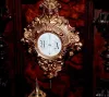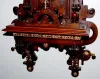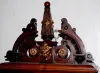 bronze mounted trim w/lady head and masks; ornate pendulum and dial; marked Fabrikmark Sserial No. 38716 42"