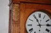 brass trim, weight and lyre pendulum; (Porcelain dial has minor scuffs.) 80" x 29"