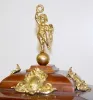 very ornate trim; 3 full sized cherubs; lion legs and side handles; dolphins; silver dial; T and S; signed Lenzkirch No. 540941 22 1/2"